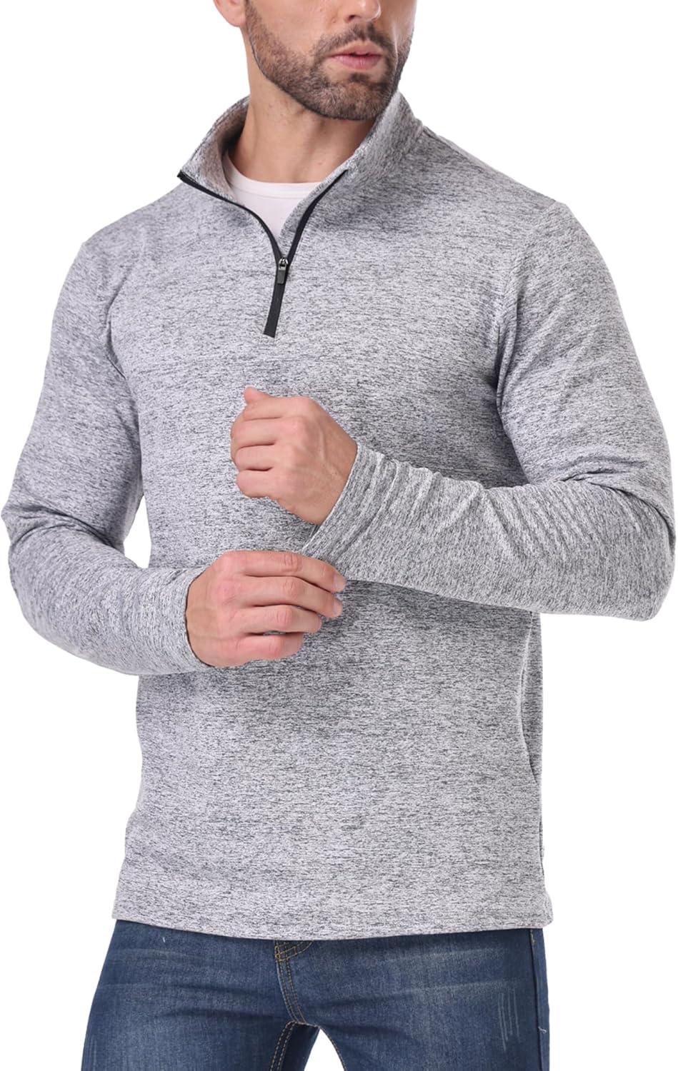 OYGSieg 3 Pack Men’s Quarter Zip Pullover Thermal Fleece Lined Sweatshirts Long Sleeve 1/4 Half Zip Tops