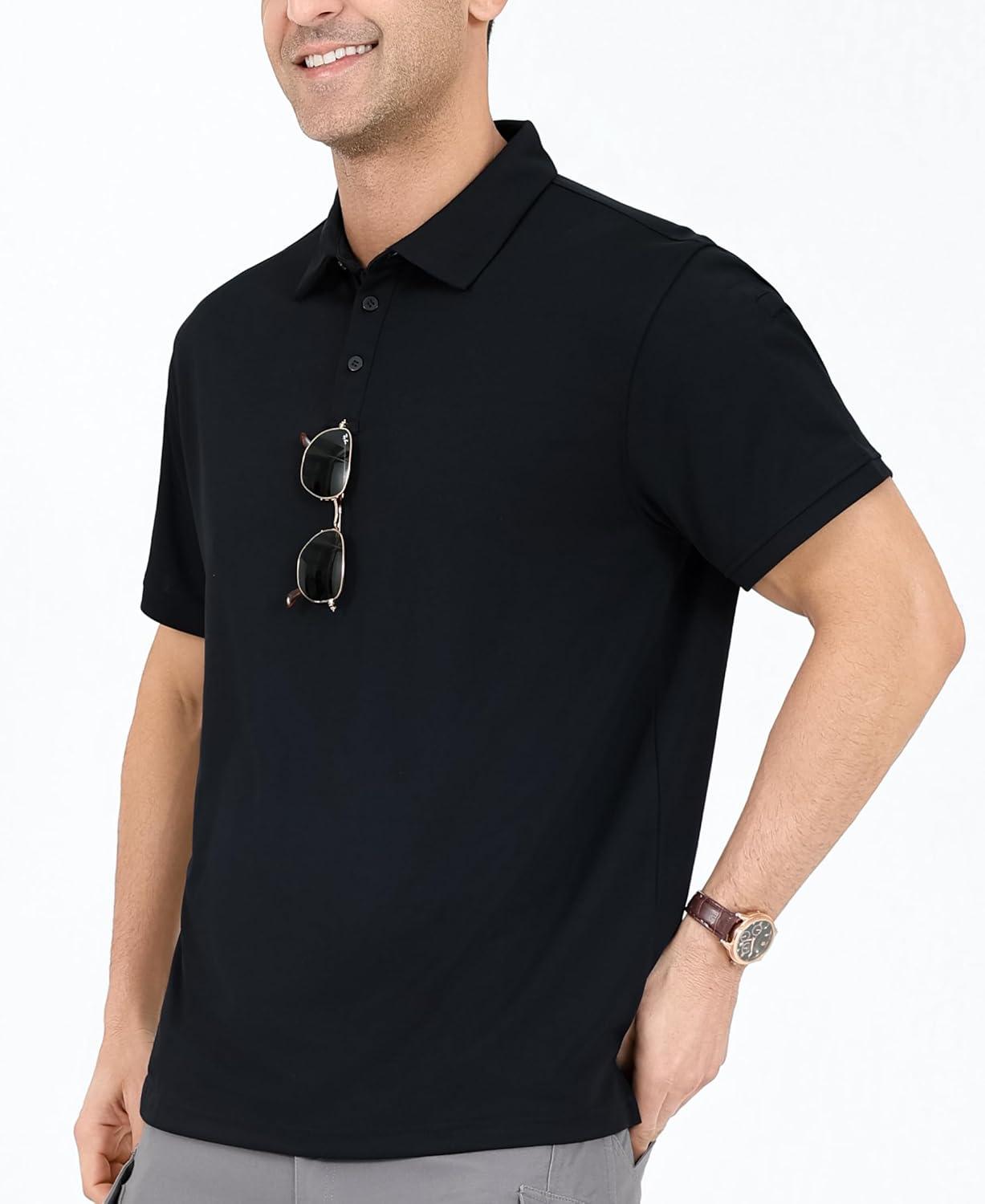 OYGSieg 5 Pack Mens Polo Shirts Quick Dry Performance Tactical Short Sleeve Golf Polo Shirts Casual Stylish Collared T-Shirts(Black/ Navy/ Blue/ Dark Gray/ Khaki)